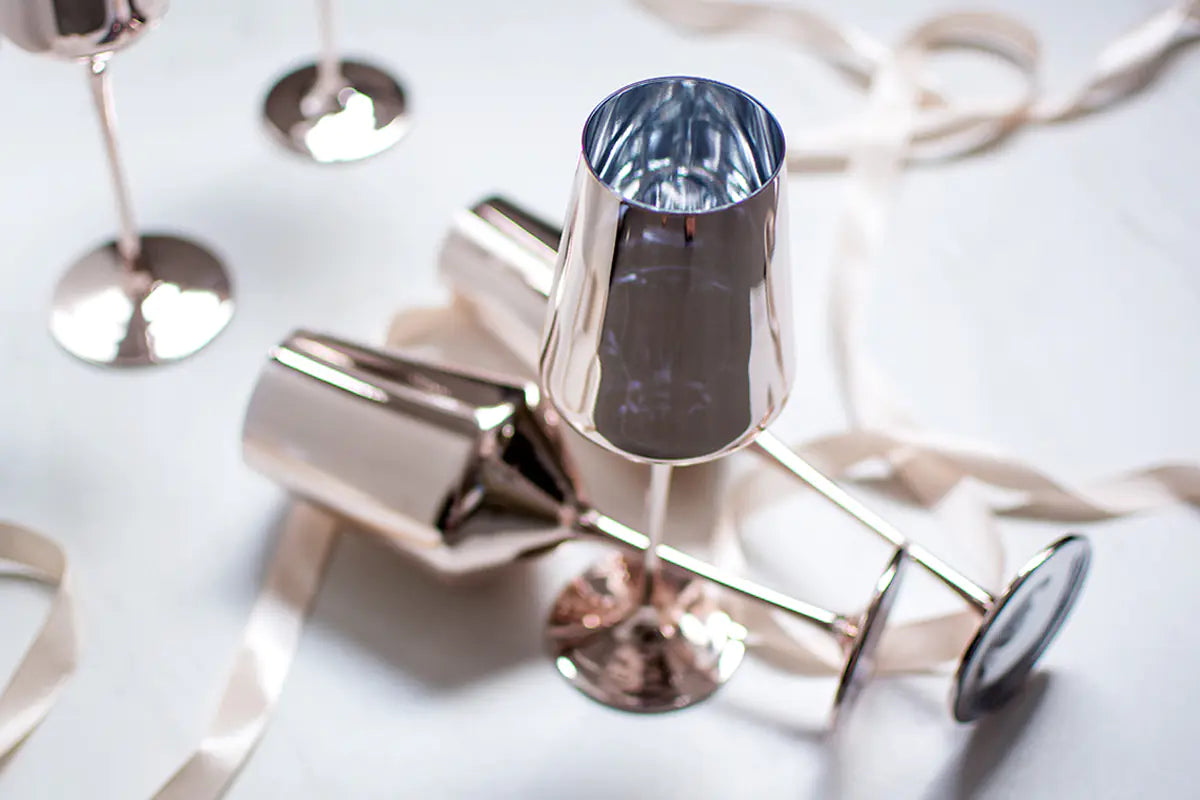 Elegante collezione di bicchieri in cristallo color oro rosa